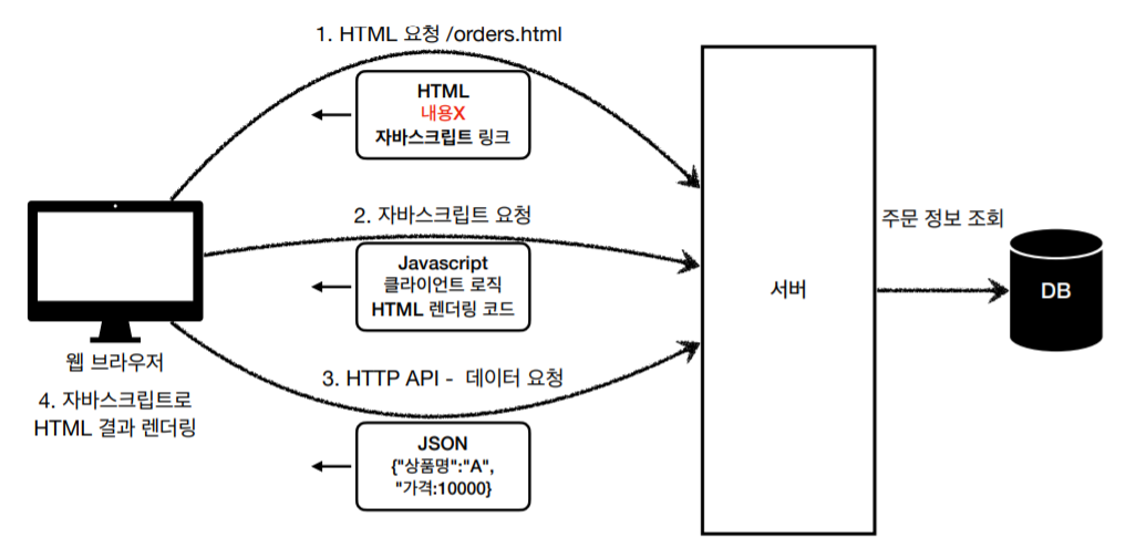 주로 동적인 화면에 사용, 웹 환경을 마치 앱 처럼 필요한 부분부분 변경할 수 있음