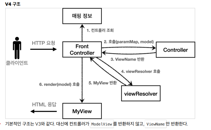 ControllerV4(Interface) : String반환 더이상 ModelView를 반환하지 않아도 괜찮다.